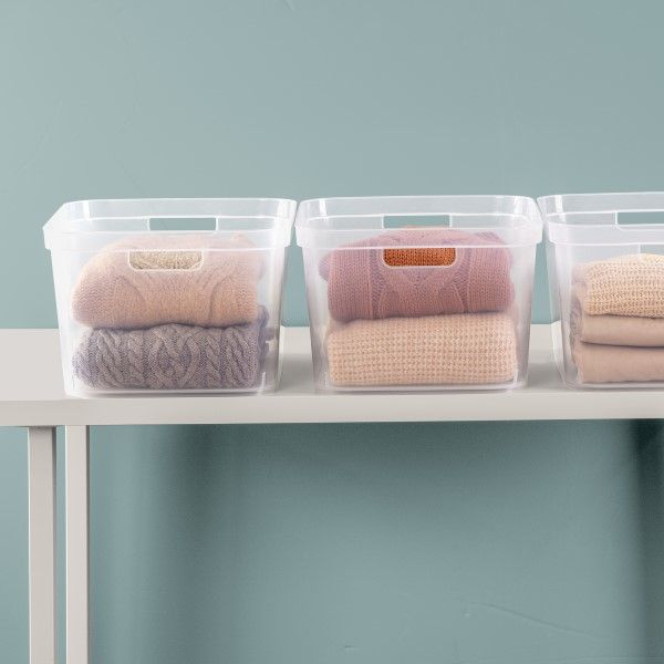 Storage Bins are a multi-purpose storage solution with a simple and classic style! The versatility of these bins allows them to be used in any room of the home – the bedroom, bathroom, dorm room, office, classroom, or playroom. Available in 4 convenient sizes, Storage Bins are perfect for closet organization, as they are specifically designed to fit on 16-inch wire shelving. The Tall Storage Bin is ideal for storing anything from towels, linens, and clothing to craft items, laundry products and cleaning supplies. The open design provides easy access for stored items and allows for quick clean up, while the carry-through handles make for effortless and comfortable transport. The sturdy, banded rim adds a stylish touch to the bins, while the modern, clear design works well with any home décor. The bins feature polished sides and a textured bottom that are both easy to clean. The overall assembled dimensions of this item are 15" L x 12 1/4" W x 8 1/4" H. Store away household items neatly, where they are most frequently used with this multi-purpose bin Carry-through handles provide full grip access and improve portability Open design offers easy access and allows for quick clean up Polished sides and easy to clean textured bottom Sturdy, banded rim adds a stylish touch Modern, clear design works with any home décor BPA-free and phthalate-free Proudly made in the USA