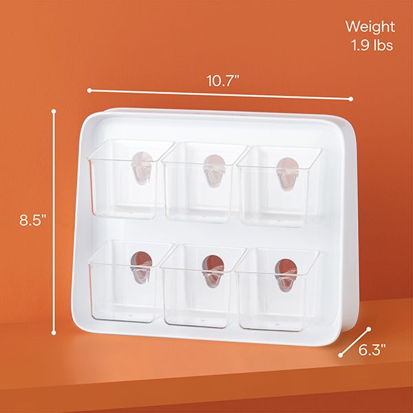 Helps organize standard-size tea bags in 12 clear, removable bins so you can maintain your daily zen. This mobile caddy is happy to fit in the cabinet or stand on a dessert table at your next event.