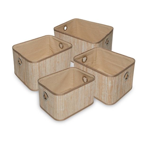 Temagami baskets are made from split bamboo, an easily renewable resource. Includes a canvas liner to prevent snagging when storing clothes. The outside has a light white wash finish. Inside and outside are easily cleaned by wiping down the surface with a damp cloth.