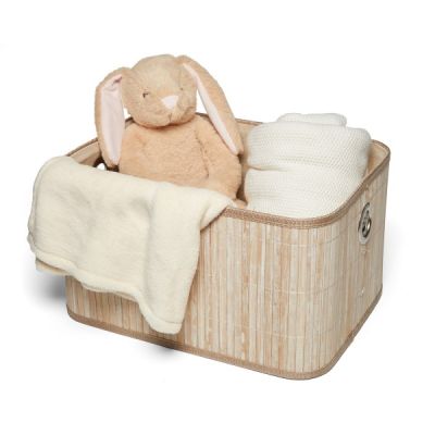 Temagami baskets are made from split bamboo, an easily renewable resource. Includes a canvas liner to prevent snagging when storing clothes. The outside has a light white wash finish. Inside and outside are easily cleaned by wiping down the surface with a damp cloth.