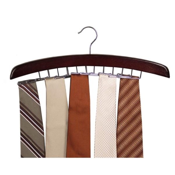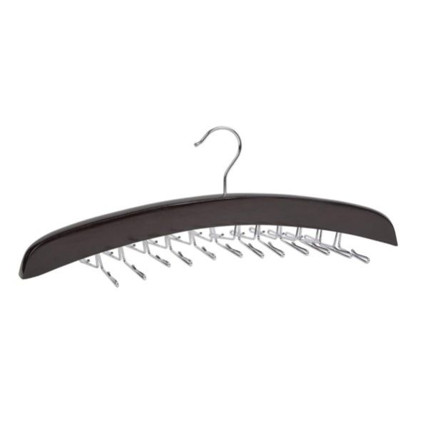 This 24 tie hanger keeps ties organized and tangle free without taking up too much space. Constructed of solid hardwood; walnut finish Chrome accents. Twenty four movable tie hooks 17 x 1 x 6.25 IN / 43 x 2.5 x 15.8cmH