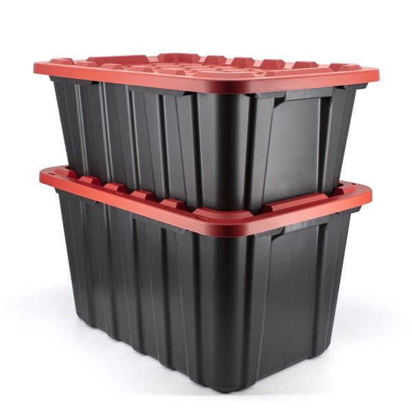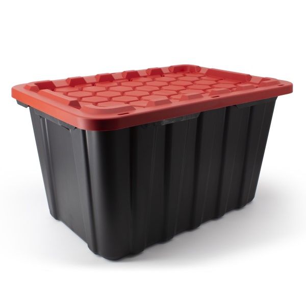 Designed for workshop, garage and household use. Durable, rugged construction. Sturdy ergonomic handles Recessed lid allows secure stacking. Can be padlocked or zip-tied with a unique keyhole design that prevents water infiltration. MADE IN CANADA