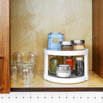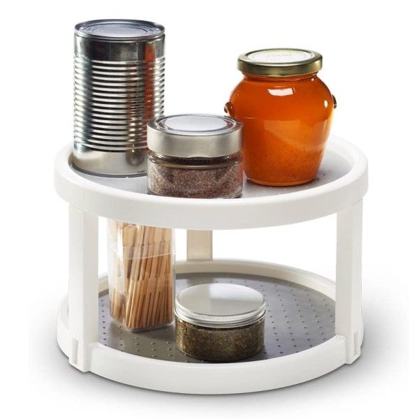 The madesmart® Basic Twin Turntable (lazy susan) helps store and make items easily accessible with a spin. With double the storage, the tiered turntable spins while non-slip lining keeps items in their place and the wide base ensures stability. Great for tabletops, fridges, and cabinets.
