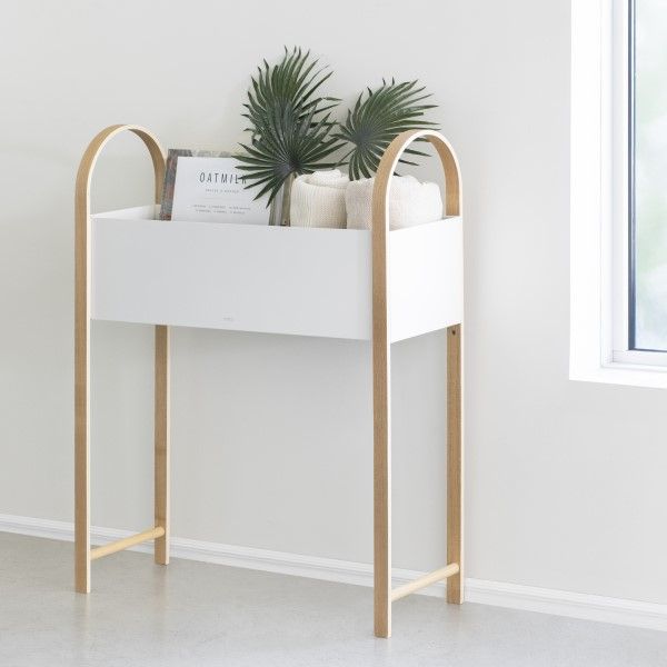 Bellwood can be used as a modern storage unit for bedrooms, bathrooms, entryways and more, to hold towels, blankets or other accessories. Alternatively, it can be used as an elevated garden bed with room to store multiple plants, Bellwood freestanding planter is a unique way to store indoor plants of your choice without the pain of bending or kneeling. Featuring wooden legs that elevate the metal planter box to show off greenery, while keeping it easy to move around, this planter is a modern and versatile storage solution. Bellwood comes with an inner plastic tray to make planting easier and less messy and is made of high-quality powder-coated metal and real wood.