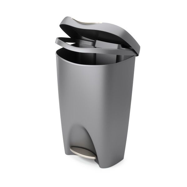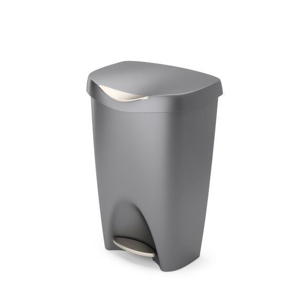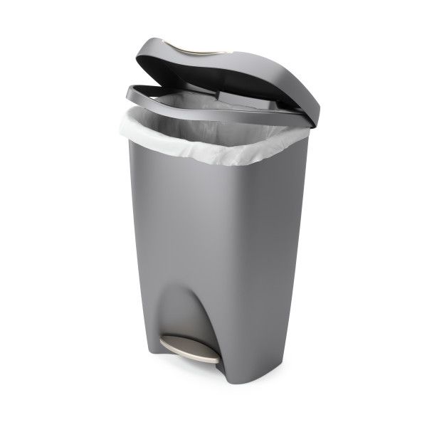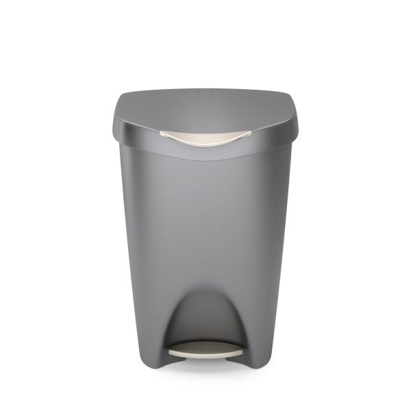 With its contoured lines and attractive satin finish, Brim provides an unexpected level of style that will compliment your kitchen decor. Brim features a stainless-steel foot pedal, that triggers the innovative soft-close lid system, and a retention ring that holds the trash bag firmly in place while concealing it. The wide-top design makes garbage bag removal easy, while the polypropylene construction makes it durable and sturdy – perfect for residential or commercial use Brim has a 13-gallon (49L) capacity that supports most garbage bag types including draw-sting and flap-tie bags. Measures: 65 x 42 x 31cm - 25.5 x 16.4 x 12.25in Also available in black # 13837