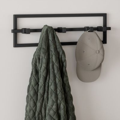 Cubiko features a sleek design, with adjustable hooks that can be moved around the rod to accommodate your items.