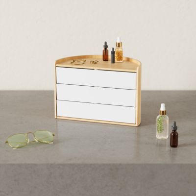Moona features round, circular shapes for a one-of-a-kind jewelry organizer. Both decorative and functional, Moona has a large display top that doubles as a tray for smaller accessories, perfume, small plants or other items.