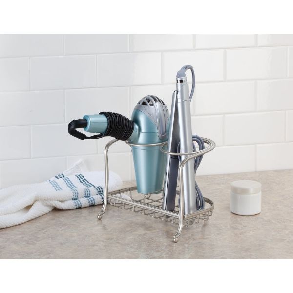 Sophisticated styling mingled with an attractive finish and durable steel create a classy hair care storage solution. Use for any hair styling products, drying, hot iron, or brushes. Small footprint so works well on the counter or under.