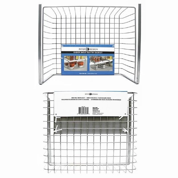 An innovative storage solution for the pantry with roomy capacity and a stylish steel wire construction. Under-shelf storage basket Easily slides over a shelf; no installation required Roomy storage capacity Made of durable steel wire: Silver finish 10 x 12.5 x 5.7 IN / 25.4 x 31.75 x 14.48cm